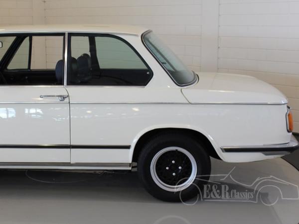 This is a 1974 BMW 2002 in the original and popular couleur Chamonix Weiss with blue leatherette interior and beautiful alloy wheels. Both the interior and exterior are in very beautiful condition. The car has the original matching numbers engine and automatic gearbox.