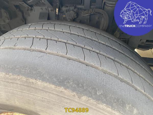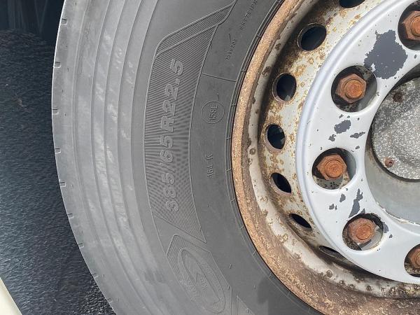 Vooras: Bandenmaat: 385/65 R22.5; Meesturend; Bandenprofiel links: 6 mm; Bandenprofiel rechts: 7 mm; Vering: bladvering