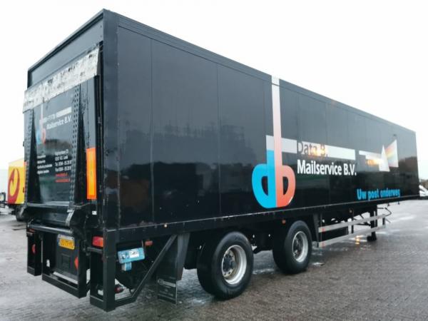 Aantal Assen: 2, Laadvermogen: 16940 kg, Eigen gewicht: 13060 kg, Totaalgewicht: 30000 kg, Soort chassis: Volledig chassis, Materiaal chassis: staal, Kingpin afmeting: 2 inch, Centrale smering, Vering type: vollucht, Kleur: Zwart, Bouwjaar opbouw: 1996, Merk as: BPW, Laadklep, Soort laadklep: achtersluit klep, Capaciteit laadklep: 2000 kg, Merk laadklep: Dautel, Materiaal laadklep: staal, Plateau grootte: 207x255, Laadklep voltage: 24, Reservewiel