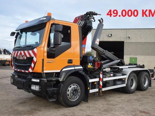 enkel 49.000 km !!! – Zoals nieuw !!! – HMF kraan 1730/ 4K – Radio gestuurd – Rotor met grijpfunctie – WAF 20 Ton Systeem – Naafreductie – Airco – Camera – Weegsysteem – totaal 26.000 kg – Tarra 13570 kg – wielbasis 3825 –