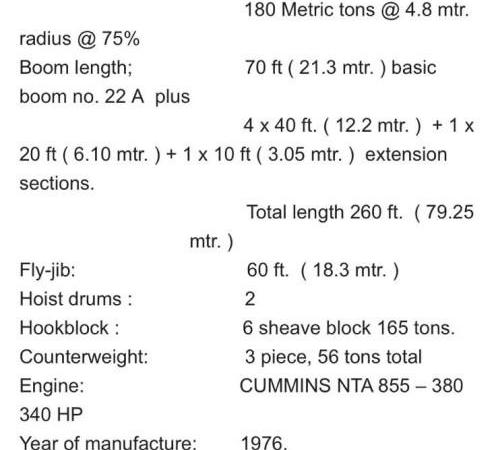 | Pormenores | Manitowoc 4100 W Vicon Crawler Crane |