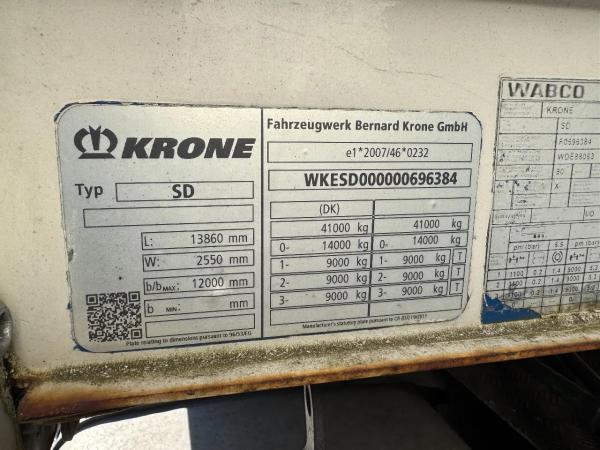 KRONE (2016) Krone SD DHOLLANDIA 2000 KG 3 AXLE SLIDING ROOF DISC BRAKES