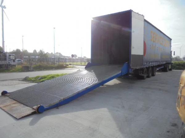 SCHUIFZEILEN MET ACHTERDEUREN EN 6.50 METER LANGE LAADBRUG DUBBEL UITKLAPBAAR.