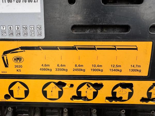 | Pormenores | TGA 35.440 8X2 - EURO 4 + HMF 2620K-RC 2018! + REMOTE + HYDRAUTO CABLE LIFT + LIFTING AXLE |