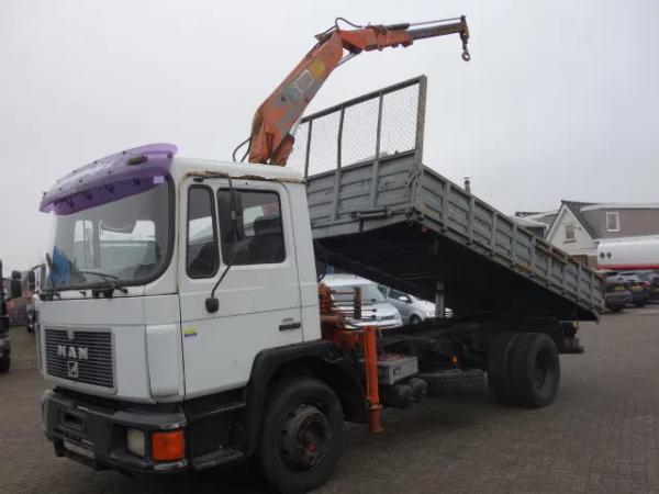 MAN 17-232 MET HIAB KRAAN 6,5 TON, 6 CIL MOTOR,3 ZIJDIGE KIPPER,BLADGEVEERD VOOR ACHTER