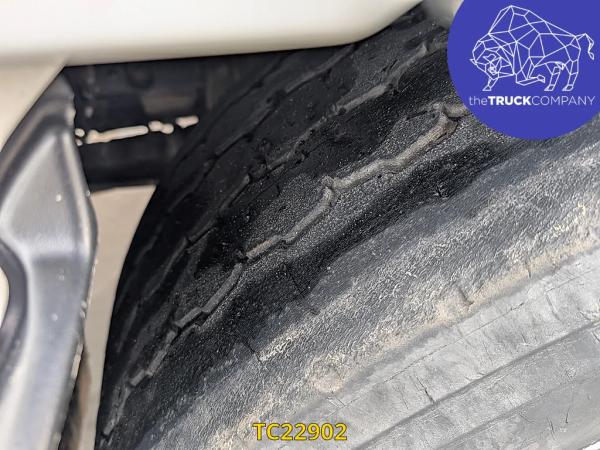 Achteras: Bandenmaat: 315/80 R22.5; Dubbellucht; Bandenprofiel linksbinnen: 11 mm; Bandenprofiel linksbuiten: 8 mm; Bandenprofiel rechtsbinnen: 8 mm; Bandenprofiel rechtsbuiten: 6 mm; Vering: luchtvering