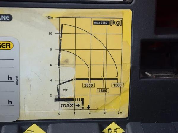 Palfinger PK12002 EH – 2 Hydraulisch met rotor en grijpfunctie – Radio gestuurd – Optrekas en Stuuras – Kipper +Platte bak – werkkoffer – totaal 26.000 kg – Tarra 12160 kg – Wielbasis 4800 mm