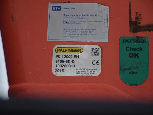 Kraan: Palfinger PK12002 EH, bouwjaar 2015, achter de cabine