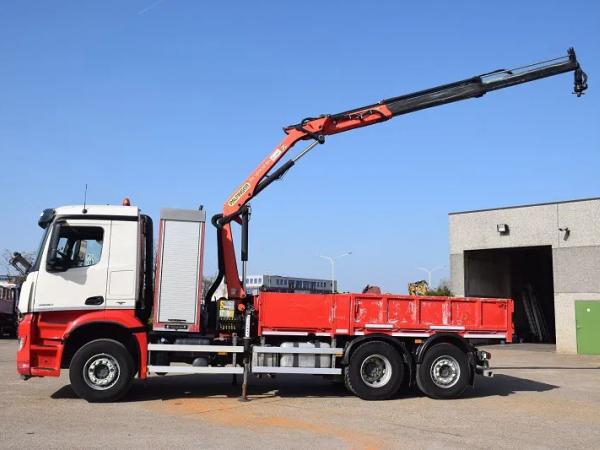 Palfinger PK12002 EH – 2 Hydraulisch met rotor en grijpfunctie – Radio gestuurd – Optrekas en Stuuras – Kipper +Platte bak – werkkoffer – totaal 26.000 kg – Tarra 12160 kg – Wielbasis 4800 mm