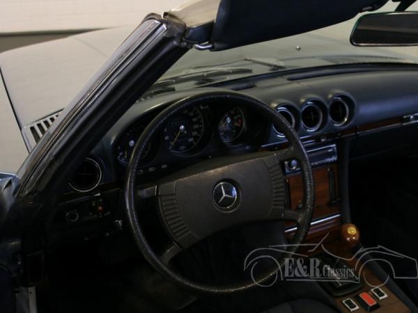 Mercedes-Benz SL 280 (R107) in neat and good driving condition. The car has the posh and popular colour combination of silver grey metallic with a dark blue interior, automatic transmission and special wheels. A nice car for classic rallies or touring.