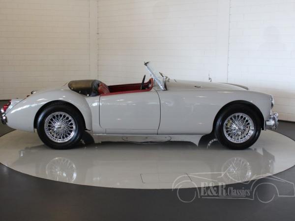 In 1959 delivered MGA 1600 Roadster, provided with the beautiful original MG Dove Grey paint with chrome wire wheels. The interior has the dashboard in paint colour with chrome clocks. The seats have red leather upholstery. A beautiful colour combination with the exterieur. The MGA 1600 has disc brakes at the front and is ready for lots of driving fun.