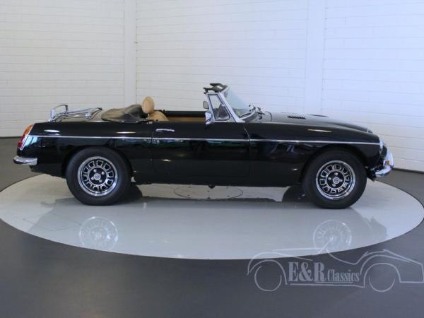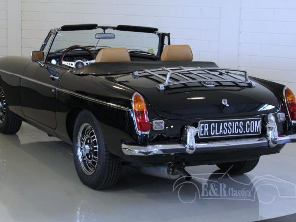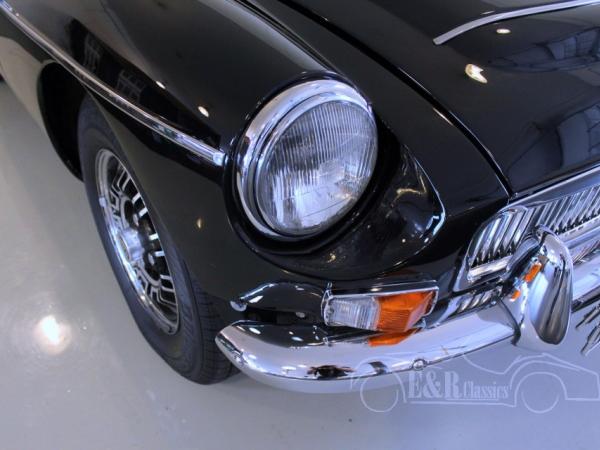 This in 1980 delivered MGB Roadster is fully restored and provided with fabulous black paint, new chrome and original MG anniversary rims. The V8 engine is fully restored by an official specialist (invoice present) and is connected to the 5 speed manual gearbox. The interior has extra comfortable seats with beige leather. This MG hasn’t been driven since restoration.