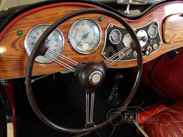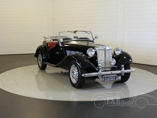 This is a 1953 MG TD Roadster. The car has black paint with a red interior. Really a very beautiful and posh combination on this real British Roadster. The car has some traces of use and is in good condition. The XPAG engine is connected to the 5-speed gearbox for more comfort. This TD guarantees a lot of driving fun.