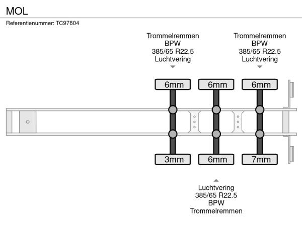 Achteras 3: Bandenprofiel links: 7 mm; Bandenprofiel rechts: 6 mm