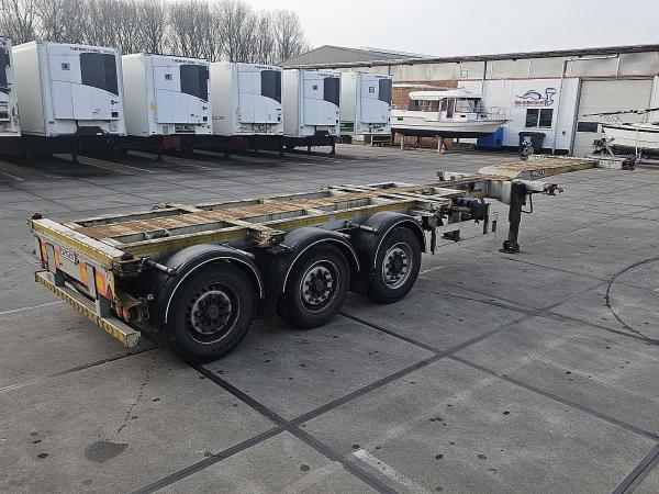 Aantal Assen: 3, Eigen gewicht: 6100 kg, Totaalgewicht: 37000 kg, Soort chassis: Volledig chassis, Materiaal chassis: staal, Kingpin afmeting: 2 inch, Vering type: luchtvering, ABS (Anti Blokkeer Systeem), EBS, Bouwjaar opbouw: 2018, Twistlocks: 2x20 + 1x30 + 1x40, Uitschuifbare chassis: Voorkant / achter, Lengte uitschuifbaar: 52, Merk as: BPW