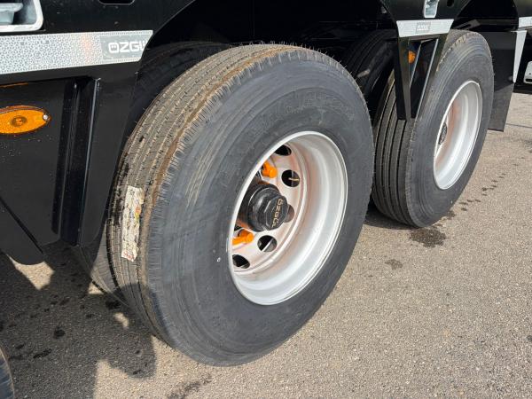 Construction & Chassis: The chassis is a heavy-duty I-type frame made of fully welded S355 steel with a UPE 240 outer frame for extra durability. The chassis is welded using an automatic ARC-submerged process, and the superstructure is welded with robot welding. The vehicle is equipped with 4 x 16-ton Özgül drum-brake axles, mechanical leaf spring suspension (12–14 leaves), a single-position EU-approved 2” kingpin (Çayırova Brand), 16+1 12 R 22.5 tires on 9.00 x 22.5 steel rims, and a mechanically operated two-speed landing gear (Gos Brand).