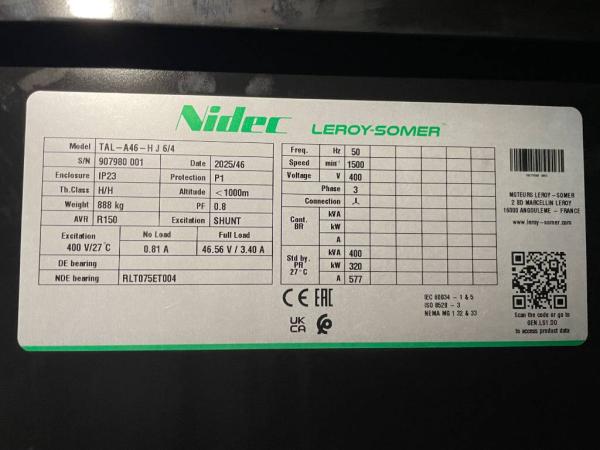 Generatorvermogen: 400 kVA