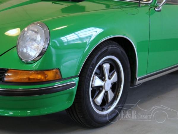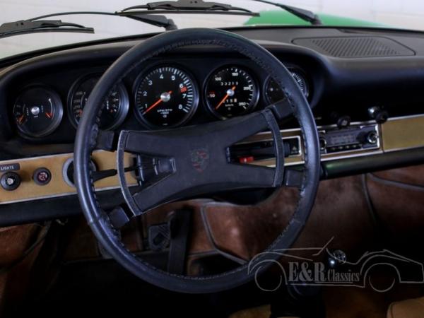 On 20-07-1973 this Porsche 911 T coupe was delivered in the beautiful paint colour ‘Emerald Green’ (225), Fuchs wheels and S-package. This Porsche is unique because of the fully original first paint, except for the bottom sides of the bumpers. Technics are fully revised and provided with new parts. The matching numbers 2341CC CIS engine was fully revised in 2016. The Porsche service booklet and documentation of the revision of the engine are present. The interior has beige leather with black dashboard, a beautiful combination and fully original. The dashboard has the original Becker Mexico radio, fully functioning. This Porsche 911 T coupe ia unique, suited for a lot of years of driving fun, but also for collectors