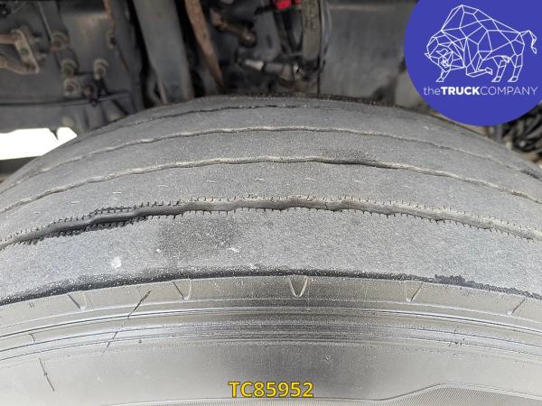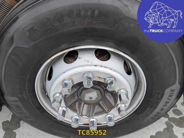 Achteras: Bandenmaat: 315/70 R22.5; Dubbellucht; Bandenprofiel linksbinnen: 6 mm; Bandenprofiel linksbuiten: 7 mm; Bandenprofiel rechtsbinnen: 8 mm; Bandenprofiel rechtsbuiten: 8 mm; Vering: luchtvering