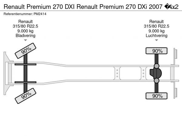 | Pormenores | Premium 270 DXI Renault Premium 270 DXi 2007 – 4x2 – Schuifzeil – Handgeschakeld – Distributie |