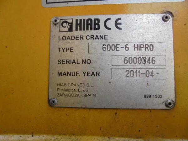Kraan: HIAB 600 E6 HI PRO, bouwjaar 2011, achter de cabine