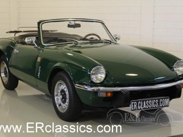 This is a 1973 Triumph Spitfire in colour British Racing Green with new black leather seats. Optically and technically in more than excellent condition. The car also has overdrive, extra oil cooler and chrome luggage rack.