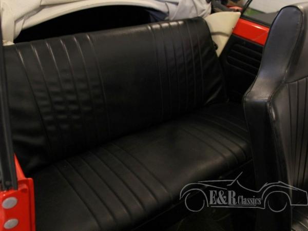 This is a 1970 VW Beetle. This 1302 LS with the straight windshield has beautiful red paint, original Lemmertz GT wheels, black interior and a black cabrio top. Technics in very good condition of course and the car has German MOT.