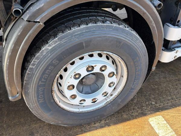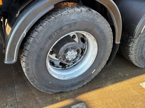 Essieu arrière 2: Dimension des pneus: 315/70 R22.5; Roues jumelées; Blocage de différentiel; Charge maximale sur essieu: 10500 kg; Sculptures des pneus gauche interne: 100%; Sculptures des pneus gauche externe: 100%; Sculptures des pneus droit externe: 100%; Sculptures des pneus droit externe: 100%; Réduction: moyeux réducteurs; Suspension: suspension pneumatique