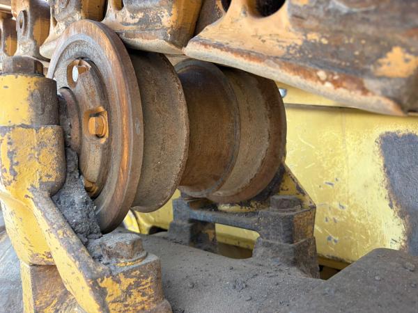 The bulldozer is equipped with an SU-blade, rear-view camera, and an air-conditioned cabin to ensure operator comfort and visibility during operation. The tracks are approximately 80%, providing solid traction and reliability on demanding job sites.