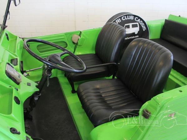 This in 1976 delivered Citroen Mehari is from the first owner. This fabulous Mehari has Tibesti green paint, combined with original wheels. The interior has black leatherette and the original dashboard in the colour of the paint. Driven 11.000 kms, not detectable, but the car gives the impression that this may be right. This Citroen drives great and takes care of a lot of fun.