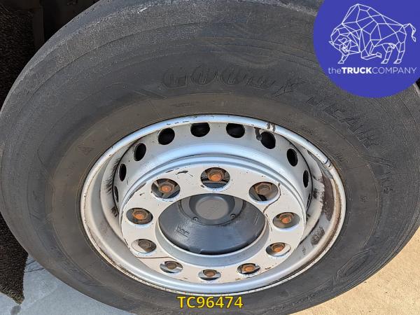 Achteras: Bandenmaat: 315/70 R22.5; Dubbellucht; Bandenprofiel linksbinnen: 10 mm; Bandenprofiel linksbuiten: 11 mm; Bandenprofiel rechtsbinnen: 11 mm; Bandenprofiel rechtsbuiten: 10 mm; Vering: luchtvering