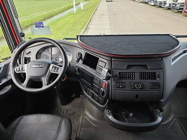 Aantal Assen: 2, Configuratie: 4x2, Eigen gewicht: 7974 kg, Totaalgewicht: 20100 kg, Diesel inhoud totaal: 845 liter, Schotelhoogte: 117 cm, Schotel type: Fixed, Aantal sperren: 1, Vering type: luchtvering, Soort cabine: Super Space Cab, Cruise control, Tachograaf, Digitale tachograaf, Stand airco, Standkachel, Elektrische ramen, Elektrische spiegels, Kleur: Rood, Verwarmde spiegels, Soort lampen: Halogeen, Laneassist, Climatecontrol, Stoelverwarming, Bluetooth, Motorvermogen: 315 Kw (422 Hp), Brandstof: diesel, Euro: 6, Soort versnellingsbak: AS-tronic, Merk versnellingsbak: Daf, Versnellingen: 12, Stuurbekrachtiging, ABS (Anti Blokkeer Systeem), ASR (Anti Slip Regeling), Start accu, Centrale vergrendeling, Stoelopstelling: 1+1, Stoelbekleding: stof, Stoel verstelling: Handmatig