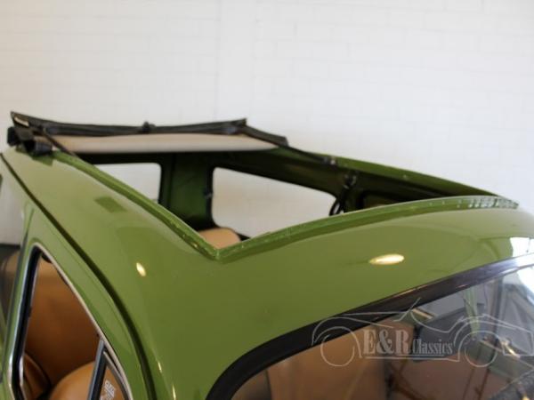 Fiat has produced the popular 500 from 1960 till 1975. The estate version is known as Giardiniera. Since 1965 the production of the Giardiniera was moved to Autobianchi in Desio. The car kept his ‘suicide doors’and was built till 1977. This is a very beautiful 1973 Giardiniera. The car has beautiful green paint and beige interior, a great combination. The car also has a sunroof. This Giardiniera has the original 499,5 CC, 2 cyl. 22 HP engine. Technical and optical in very good condition.The car is ready for lots of driving fun.