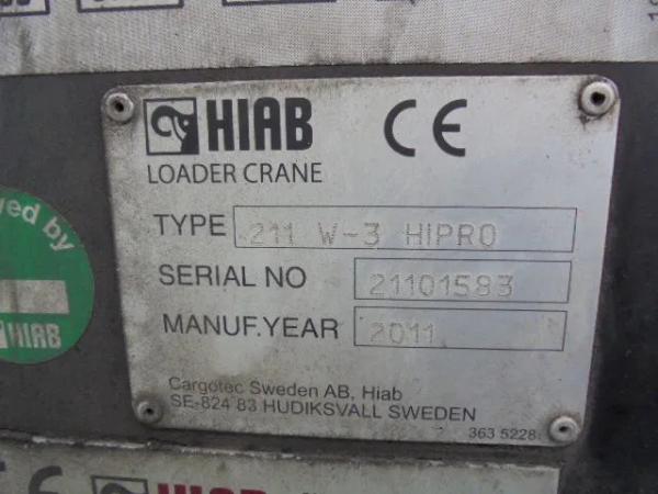 Kraan: HIAB 211 3 HI PRO, bouwjaar 2012, achter de cabine