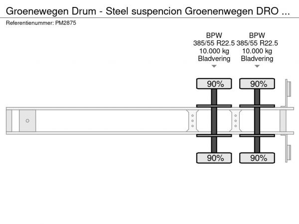 GROENEWEGEN (1984) Groenewegen Drum - Steel suspencion Groenenwegen DRO 2 -assige schuifzeiltrailer - Trommelremmen - Bladvering - widespread PM2875