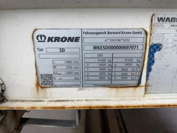KRONE (2016) Krone SD DHOLLANDIA 2000 KG 3 AXLE SLIDING ROOF DISC BRAKES