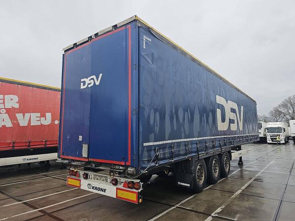 Aantal Assen: 3, Soort chassis: Volledig chassis, Materiaal chassis: staal, Kingpin afmeting: 2 inch, Vering type: vollucht, ABS (Anti Blokkeer Systeem), EBS, Bouwjaar opbouw: 2018, Materiaal opbouw: staal, Zijwand materiaal: zeil, TIR-lijn, Schuifdak, Merk as: KRONE