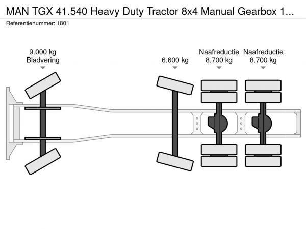 | Особенности | TGX 41.540 Heavy Duty Tractor 8x4 Manual Gearbox 160 Ton Push Pull Retarder Good Condition |