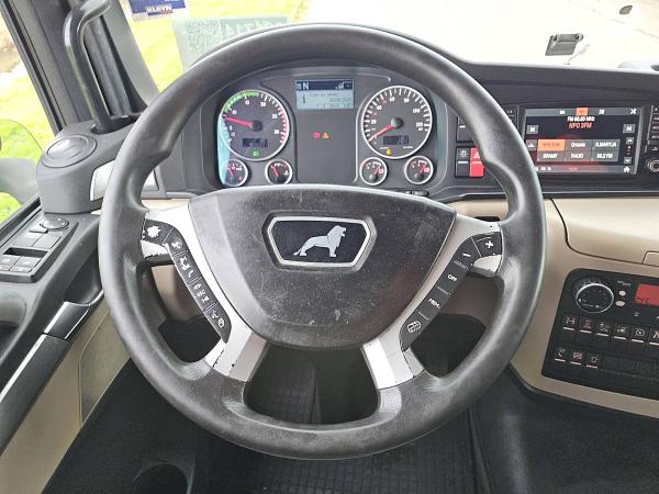 Aantal Assen: 2, Configuratie: 4x2, Dubbele banden, Eigen gewicht: 7442 kg, Totaalgewicht: 18000 kg, Diesel inhoud totaal: 730 liter, 2e dieseltank, Schotelhoogte: 109 cm, Schotel type: Fixed, Aantal sperren: 10, Lichtmetalen velgen, Vering type: luchtvering, Soort cabine: slaapcabine, Cruise control, Tachograaf, Digitale tachograaf, Airconditioning, Stand airco, Standkachel, Elektrische ramen, Elektrische spiegels, Radio/cassette, Kleur: Rood, Verwarmde spiegels, Soort lampen: Halogeen, Laneassist, Climatecontrol, Stoelverwarming, Bluetooth, Zwaailichten, Motorvermogen: 338 Kw (453 Hp), Brandstof: diesel, Euro: 6, Soort versnellingsbak: Automaat, Merk versnellingsbak: Scania, Versnellingen: 14, Extra remsysteem, Merk retarder: Scania, Stuurbekrachtiging, ABS (Anti Blokkeer Systeem), Start accu, Stoelopstelling: 1+1, Stoelbekleding: stof, Stoel verstelling: Handmatig