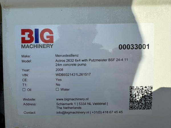 | Особенности | Actros 2632 6x4 with Putzmeister BSF 24-4 11 24m concrete pump |