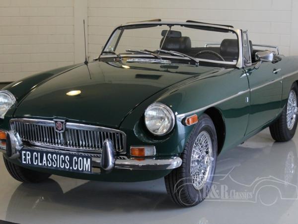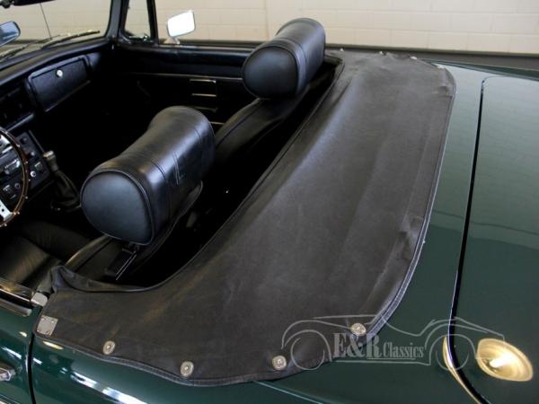 This MGB was delivered in beautiful British Racing Green paint with chrome wire wheels and luggagarack. The car has driven only 8.000 kms after the complete restoration. Several invoices are present. The interior has black leather and comfortable seats with headsupport. The interior also has a luxurious wooden steering wheel and chrome clocks. The fabulous driving MGB guarantees a lot of driving fun.