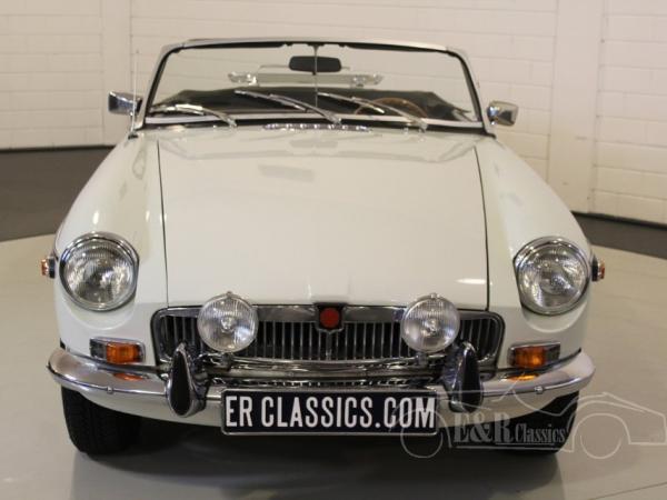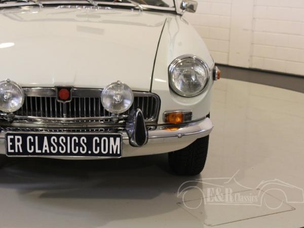 Glacier White 1975 MGB cabriolet. Optically and technically in very good condition. In 2017 the engine was replaced by a new revised engine (invoice present) in our workshop. The car has overdrive and chrome wire wheels. So a MGB ready for lots of driving fun.