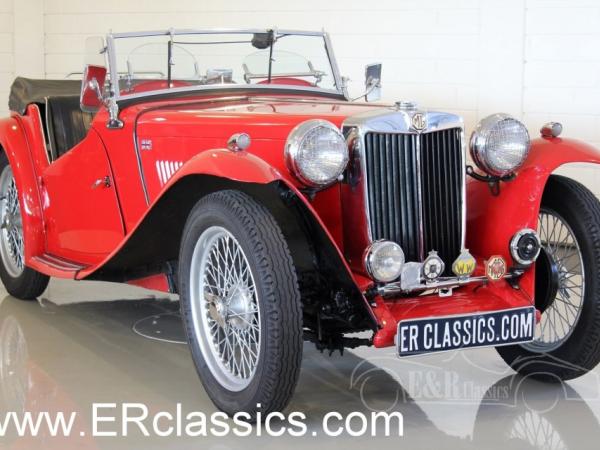 Beautiful 1948 MG TC. Provided with red paint, wire wheels and marvellous chrome. The interior has the original black leather seat and the elegant dashboard with chrome clocks. This MG has had 1 owner since 1979 and is a real car for the fans.