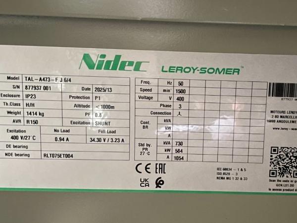 Generatorvermogen: 700 kVA