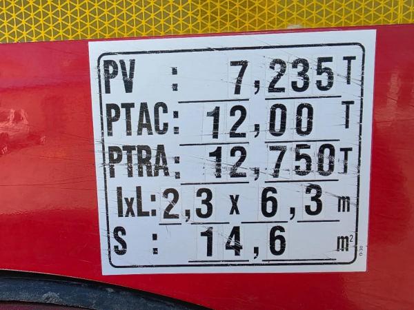 Essieu arrière: Dimension des pneus: 365/80 R20; Charge maximale sur essieu: 9000 kg; Sculptures des pneus gauche: 90%; Sculptures des pneus droite: 90%