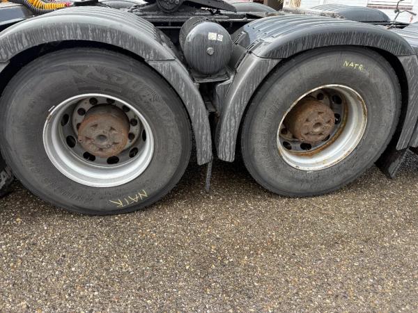Achteras 2: Bandenmaat: 315X80X22.5; Dubbellucht; Differentieelslot; Max. aslast: 9500 kg; Bandenprofiel linksbinnen: 30%; Bandenprofiel linksbuiten: 30%; Bandenprofiel rechtsbinnen: 30%; Bandenprofiel rechtsbuiten: 30%; Reductie: naafreductie