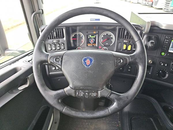 Aantal Assen: 3, Configuratie: 6x2, Eigen gewicht: 16020 kg, Totaalgewicht: 27000 kg, Diesel inhoud totaal: 300 liter, Schotelhoogte: 105 cm, Schotel type: Fixed, Aantal sperren: 1, Vering type: vollucht, Soort cabine: slaapcabine, Cruise control, Tachograaf, Digitale tachograaf, Airconditioning, Stand airco, Standkachel, Elektrische ramen, Elektrische spiegels, Radio/cassette, GPS navigatie, Kleur: Wit, Verwarmde spiegels, Soort lampen: Halogeen, Snelheidsbegrenzing, Laneassist, Climatecontrol, Stoelverwarming, Bluetooth, Zwaailichten, Motorvermogen: 331 Kw (444 Hp), Brandstof: diesel, Euro: 6, Soort versnellingsbak: Opti-cruise, Merk versnellingsbak: Scania, Snelheidsbegrenzing, Versnellingen: 12, Extra remsysteem, Merk retarder: Scania, Stuurbekrachtiging, ABS (Anti Blokkeer Systeem), ASR (Anti Slip Regeling), PTO, PTO soort: 1, Start accu, Pomp, Centrale vergrendeling, Stoelopstelling: 1+1, Stoelbekleding: stof, Stoel verstelling: Handmatig, Kraan, Kraan merk: HMF 5020 K5, Capaciteit kraan: 50, Aantal steunpoten: 4, CE goedgekeurd, Afstandsbediening, Positie kraan: achter de cabine, Hydr. uitschuifbaar: 5 keer, Extra hydr. Aansl.: geen, Lasthaak, CRANE HMF 5020 K5 / 6X2*4 / SCR ONLY