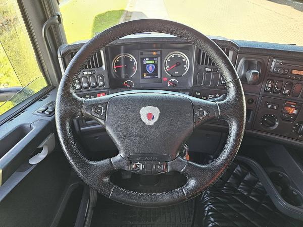 Aantal Assen: 2, Configuratie: 4x2, Diesel inhoud totaal: 1400 liter, 2e dieseltank, Schotelhoogte: 109 cm, Schotel type: Fixed, Aantal sperren: 1, Vering type: luchtvering, Soort cabine: Topline, Cruise control, Tachograaf, Digitale tachograaf, Airconditioning, Standkachel, Elektrische ramen, Elektrische spiegels, Radio/cassette, Kleur: Wit, Verwarmde spiegels, Soort lampen: Halogeen, Climatecontrol, Motorvermogen: 324 Kw (434 Hp), Brandstof: diesel, Euro: 5, Soort versnellingsbak: Opti-cruise, Merk versnellingsbak: Scania, Versnellingen: 12, Koppelingspedaal, Extra remsysteem, Merk retarder: Scania, Stuurbekrachtiging, ABS (Anti Blokkeer Systeem), ASR (Anti Slip Regeling), Start accu, Centrale vergrendeling, Stoelopstelling: 1+1, Stoelbekleding: stof, Stoel verstelling: Handmatig