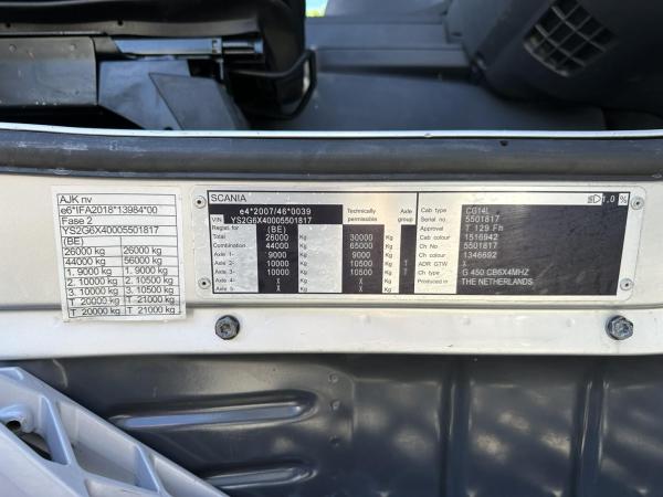SCANIA (2018) Scania G450 6x4 HOOKLIFT AJK 20T - 5760mm - 3m90 WB - HUB REDUCTION / STEEL SUSP. - EURO 6 - BE TRUCK MJC12023