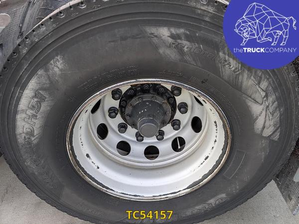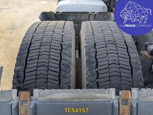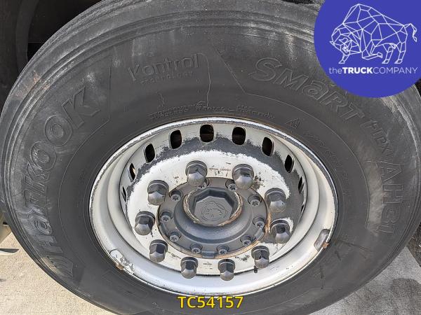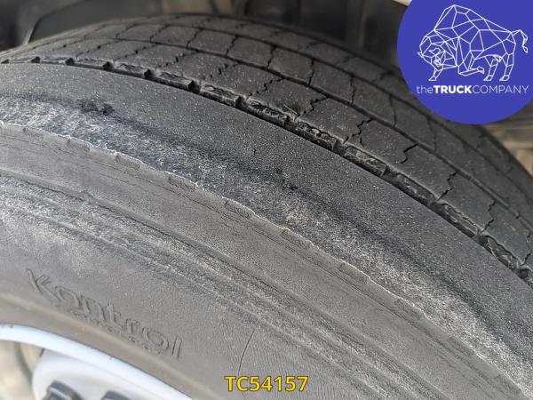 Achteras: Bandenmaat: 315/80 R22.5; Dubbellucht; Bandenprofiel linksbinnen: 8 mm; Bandenprofiel linksbuiten: 9 mm; Bandenprofiel rechtsbinnen: 7 mm; Bandenprofiel rechtsbuiten: 6 mm; Vering: luchtvering